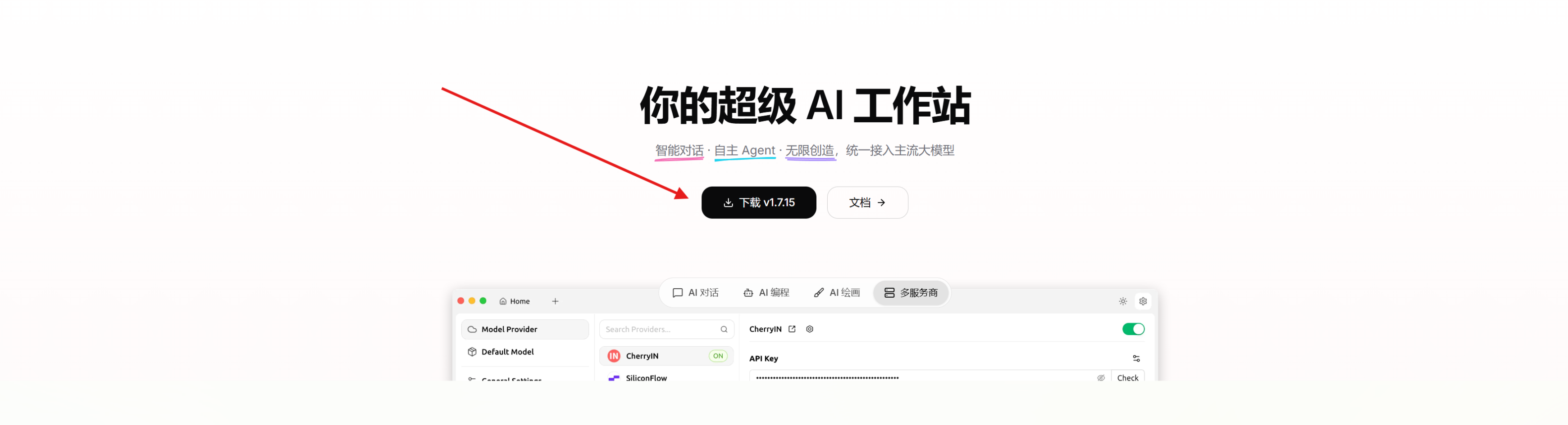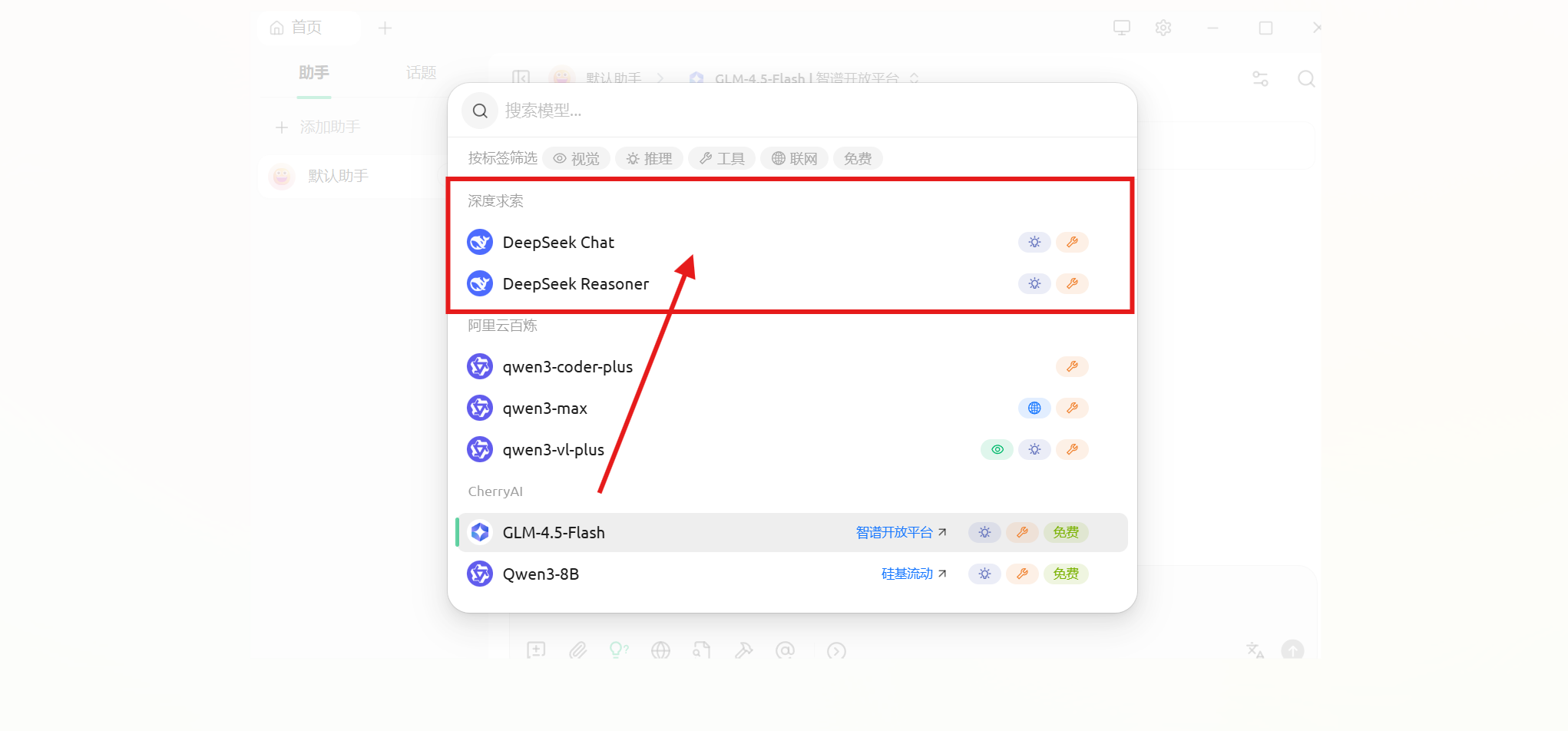 Cherry Studio 集成了市面上几乎所有的 ai 大模型调用。