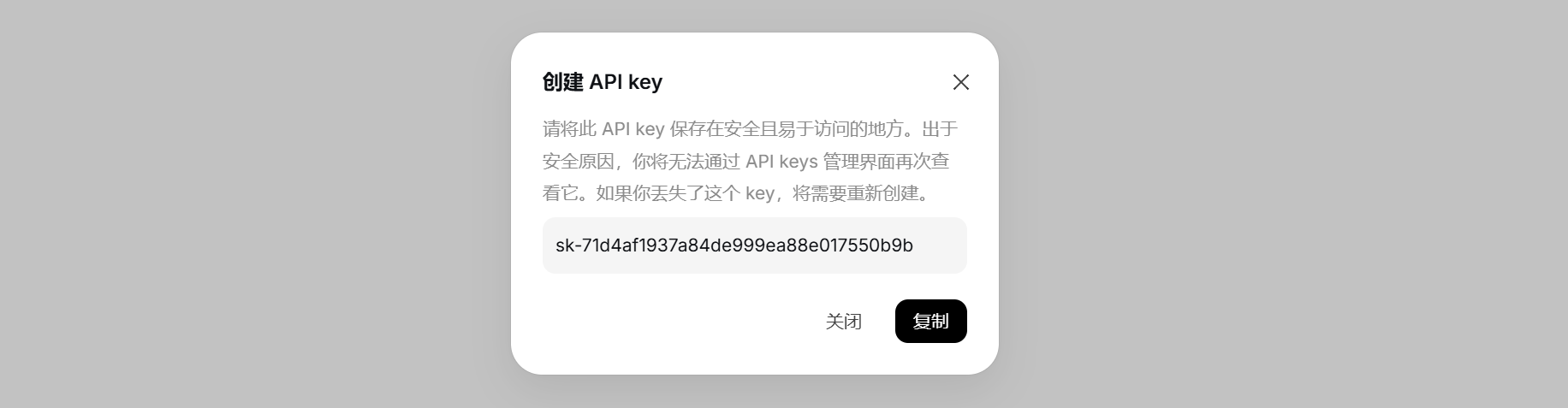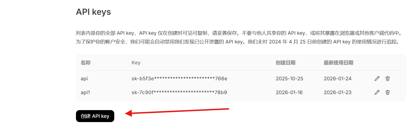 点击创建api key