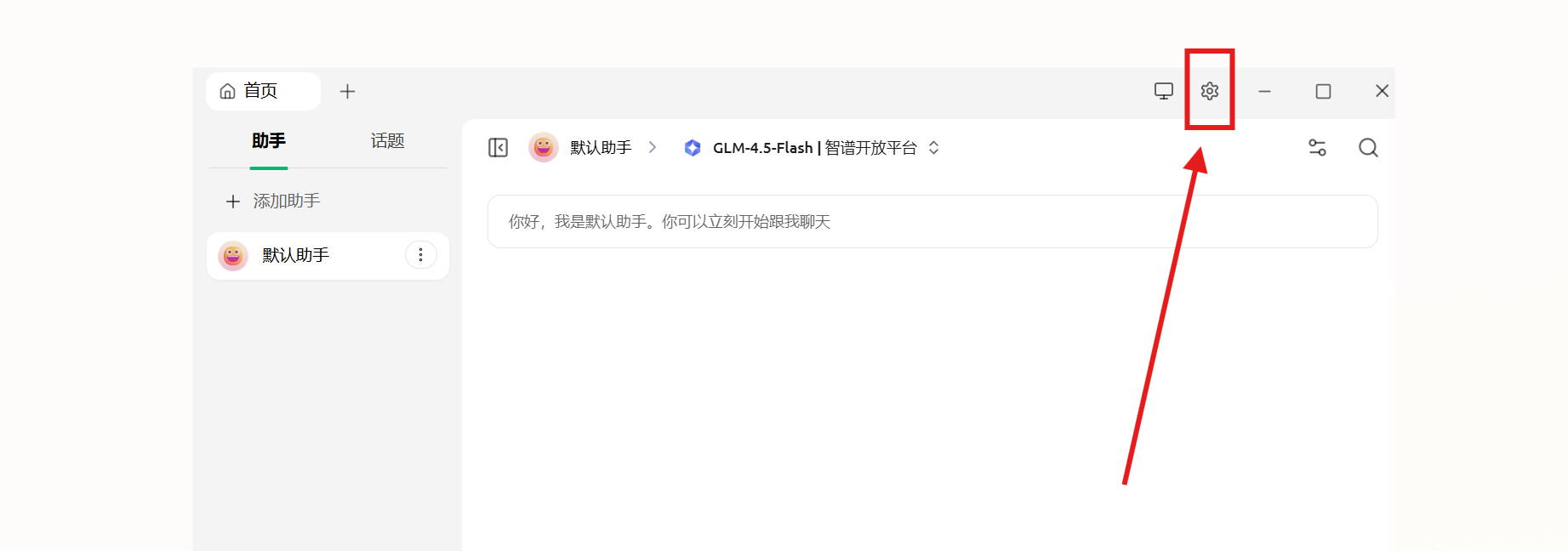 然后打开Cherry Studio ,点击右上角设置图标: