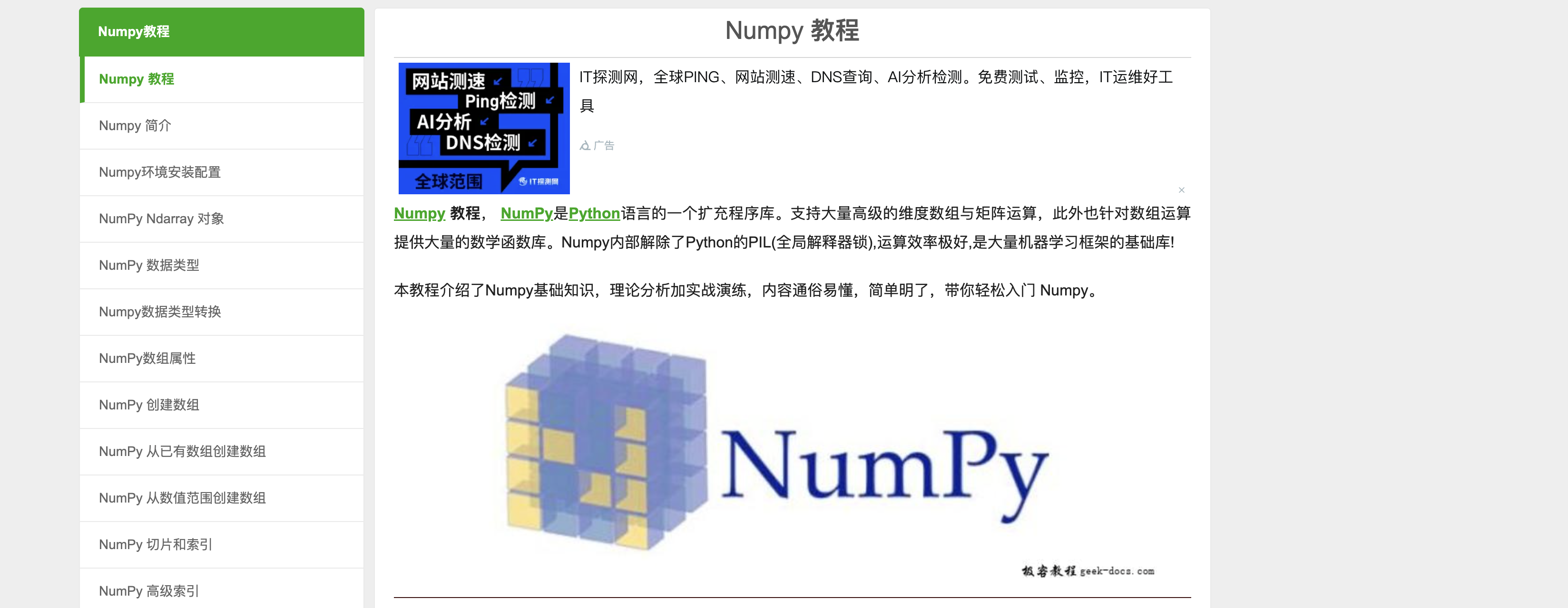 下面举一个例子,比如我想学习python 中的numpy 库: